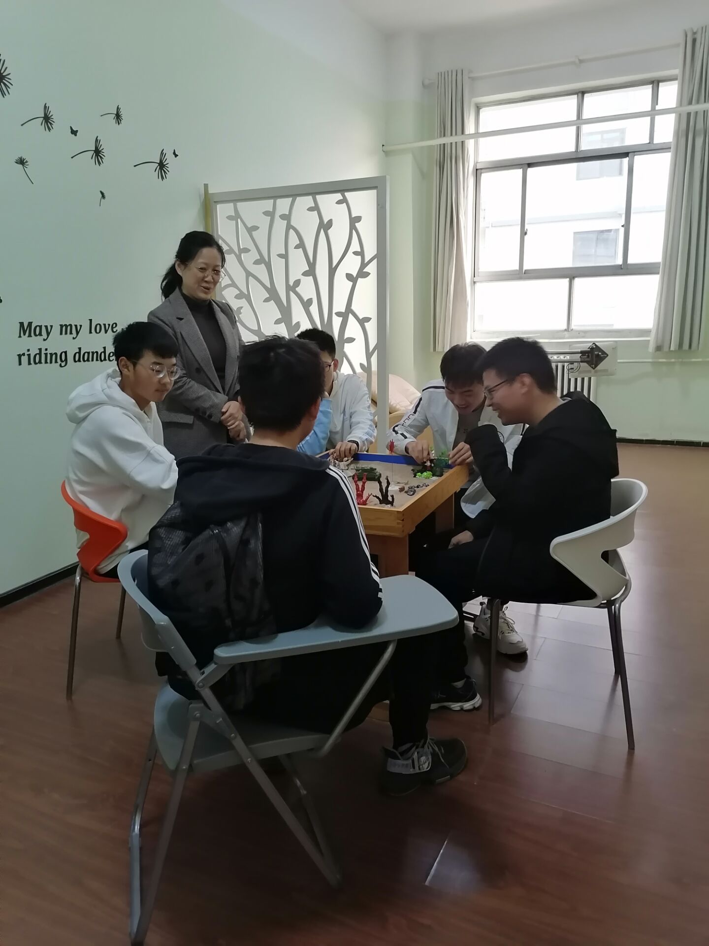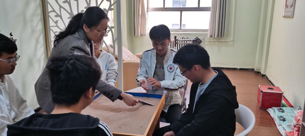 心理咨询中心主任安伯欣老师首先带领同学们参观了心理集中讨论室、心理咨询室,介绍了舒缓音乐治疗的过程,同时也普及了老员工心理健康基本知识和各级心理站点。参观过程中,同学们针对不同心理健康相关知识进行了讨论,大家积极参与、各抒己见。最后,安老师带领同学们体验了沙盘并进行了详细的讲解。至此,本次活动圆满结束。