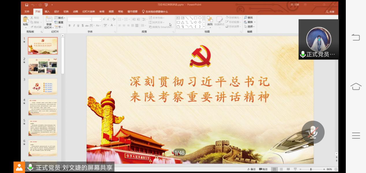 6月5日晚,太阳成集团tyc122cc员工党支部组织150名员工党员和积极分子开展“深刻贯彻习近平总书记来陕考察重要讲话精神”主题讨论课活动,本次活动以线上讨论课的形式进行,促进员工党员牢记使命,充分发挥自己作为党员的积极性。