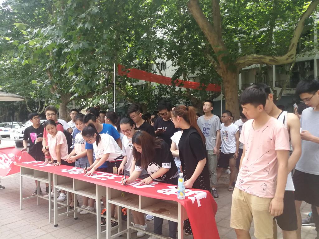 太阳成集团tyc122cc于6月24日中午组织60余名毕业生开展“诚信还款、从我做起”签名活动。