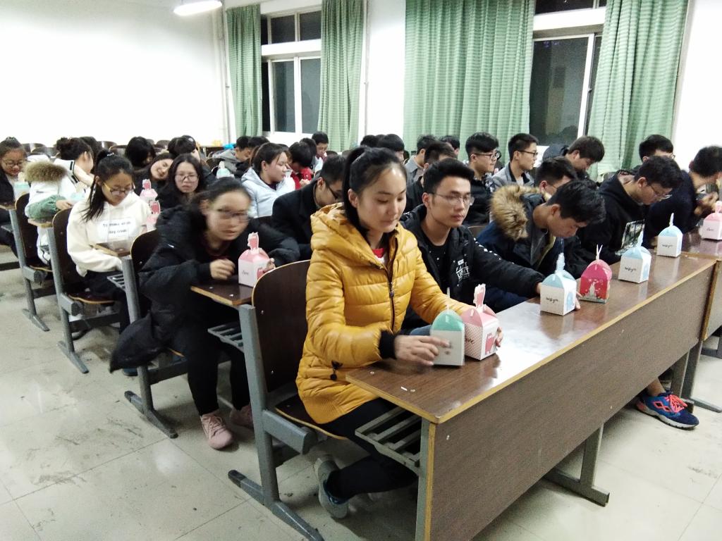 12月25日,太阳成集团tyc122cc开展了以“感恩”为主题的心理健康教育主题班会。班会由各班心理委员主持,包括心理知识教育、有奖问答和游戏互动等环节,主要以讲述、写纸条、分组讨论等形式进行。