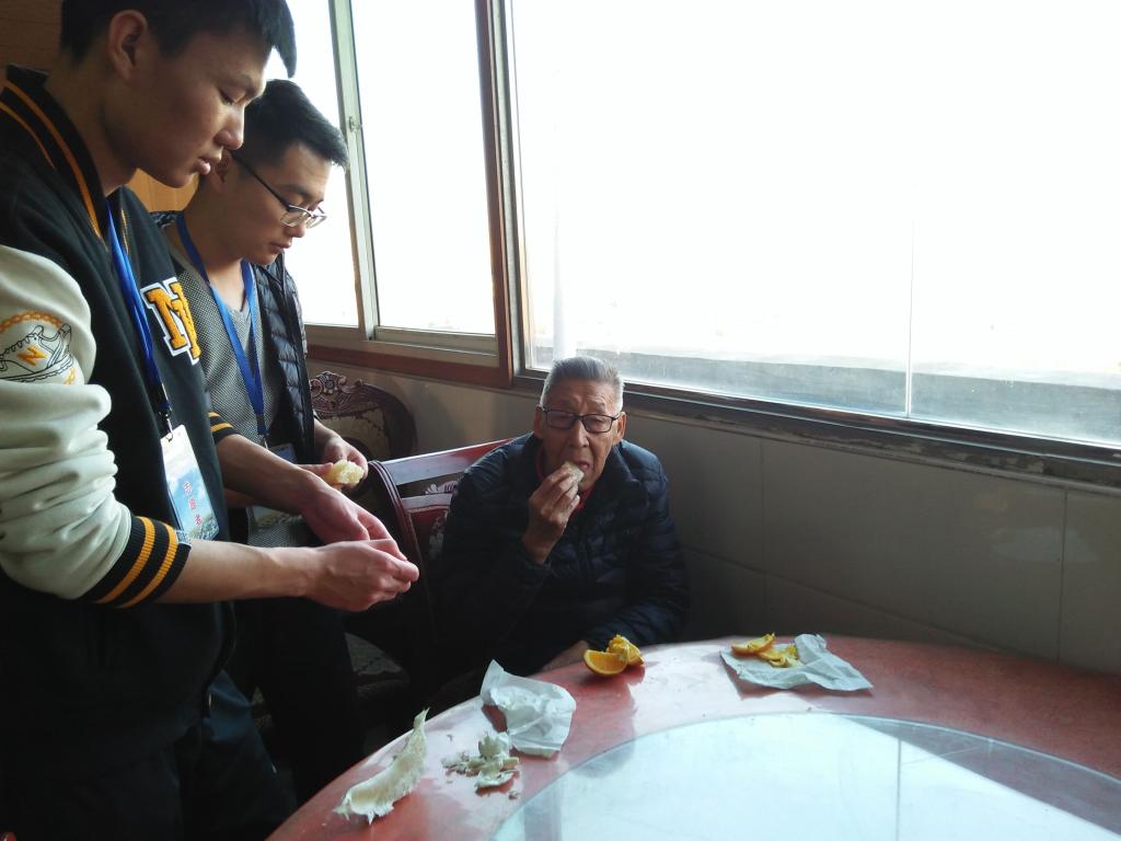 在与经理简单交接完有关工作之后,此次活动正式开始。大家分成四个小组,有的帮助老人收拾房间,陪老人下棋聊天解闷,有的帮忙清理环境,有的唱红歌、演小品、跳舞,有的帮老人按摩,在这寒冷的冬天,志愿者们为老人所做的每一件事都给敬老院增添了一份温暖。这次志愿服务在老人和志愿者的欢笑声中圆满结束。当看到老人和蔼可亲的笑脸,志愿者们也非常开心,他们用自己炽热的内心,为他人、为社会贡献了自己的力量。