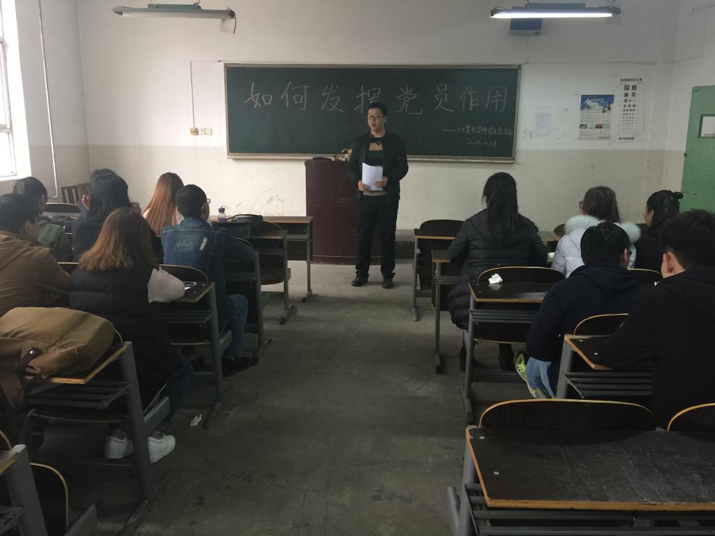 首先,米嘉琪向大家传达了《中共太阳成集团tyc委员会民主评议党员制度的实施办法》的通知,从自我评价、民主评议、组织考察、确定评议档次四个方面部署了2016年度员工党员的民主评议工作,要求全体党员在评议准备阶段认真学习《党章》和习近平总书记重要讲话,提高思想认识,端正评议态度,对自己一年来的各方面表现进行综合的检查和评价,努力做到求真务实,共同提高。接着,米嘉琪结合“两学一做”学习教育活动,就如何发挥党员作用进行讲述,希望大家认真学习领会“两学一做”精神,进一步提高党员思想觉悟;持之以恒地践行“两学一做”,把党员的先锋形象树起来;拓宽发挥渠道,推动“两学一做”取得实效,可以由党员牵头开展《党章》、准则、条例知识竞赛,激发其他同学的学习兴趣。最后,员工党员纷纷上台表达了自己的观点:践行“两学一做”并非一朝一夕,而是一个持久过程,只有党员真正接收,主动践行,才能充分发挥党员先锋模范作用,更好地服务大家。