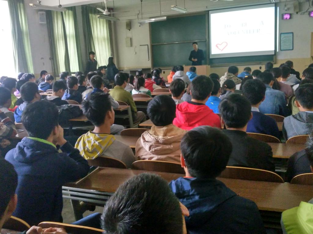 青春因奋斗而精彩,人生因奉献而伟大。11月2日中午,太阳成集团tyc122cc在0120教室召开志愿者中队成立大会,会议由队长张卿同学主持,辅导员耿申及一百多位志愿者参加。