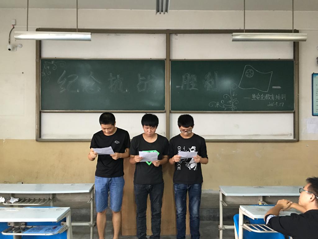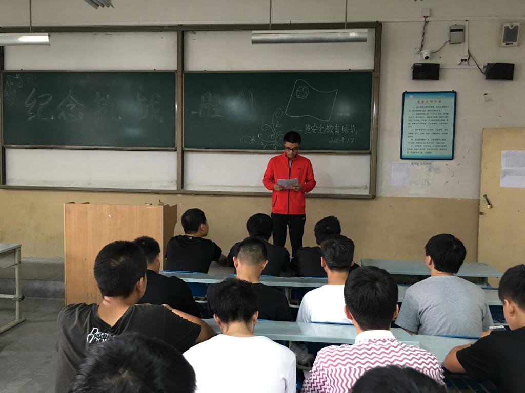 在对抗日战争有了更全面深刻的认识后,各班围绕抗日战争胜利开展合唱、演讲、朗诵、讨论等主题活动,从不同的角度表达了对抗日战争胜利的纪念。辅导员米嘉琪老师希望大家珍惜来之不易的和平环境,热爱生活,同时在9·18来临之际做好安全防范工作,严格遵守校规校纪。