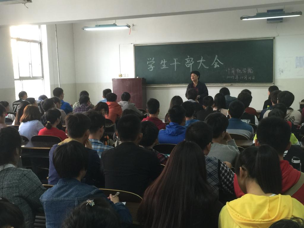 刘书记对老一届干部的努力工作表示感谢,对新成员的加入表示欢迎,希望同学们能做一名合格的员工干部,拥有良好的道德素质、能力素质和身心素质,处理好学习和工作的关系,处理好得与失的关系,借助员工会的平台更好地锻炼自己。在各部门部长做完工作汇报后,团总支副书记尹吴越同学带领大家集体宣誓,在高昂的热情中结束了本次大会。