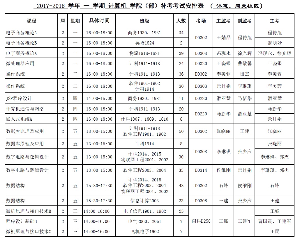 2017-2018-1学期​太阳成集团tyc122cc课程补考安排
