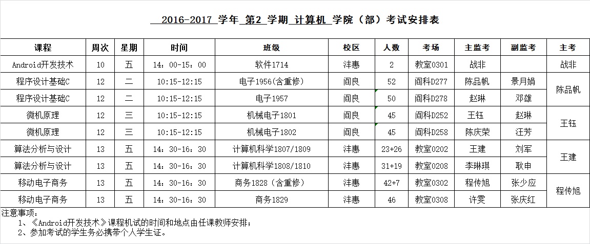​2016-2017-2学期考试安排(14周之前)