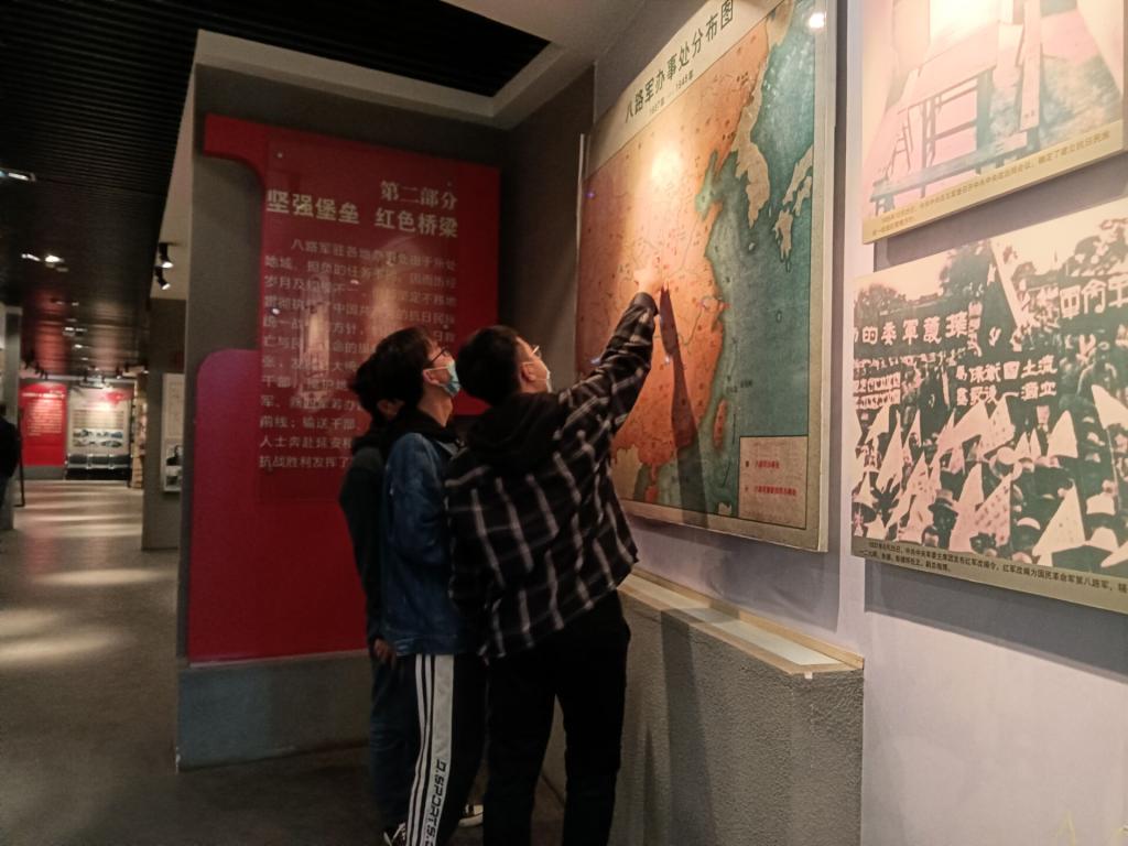 八路军西安办事处旧址是“西安事变”和平解决后、中国共产党在此设立的红军联络处,1937年9月改为八路军驻西安办事处,是全国所有的八路军、新四军办事处中成立最早、坚持时间最长、影响最大的办事机构,是“全国百家爱国主义教育基地”之一。同学们随着讲解人员深情讲解着这段“八办”的历史,先后参观了党支部办公室、机要大厅、救亡室等处,深刻感受到了无数革命先烈为共产主义的远大理想和革命事业奋斗不息的精神,领悟着先辈们的热血奋斗和今天和平的来之不易。在参观过程中,同学们纷纷驻足,浏览历史文物,学习历史知识。