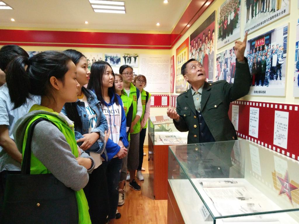 在双拥文化拥军艺术团创始人李新建老师的带领下,大家参观了他30年的拥军之路。展馆以照片、视频、实物等形式呈现了情系军营、拥军之路、团结协作、拥军硕果四个部分。通过李老师对拥军之路的讲解,大家深受感动:“李新建老师不图回报,走遍全国大江南北进到部队表演节目,帮助战士排练节目,用微薄的退休工资几十年如一日地坚持真的非常不容易。重返军营的愿望,李新建老师一守就是29年。”