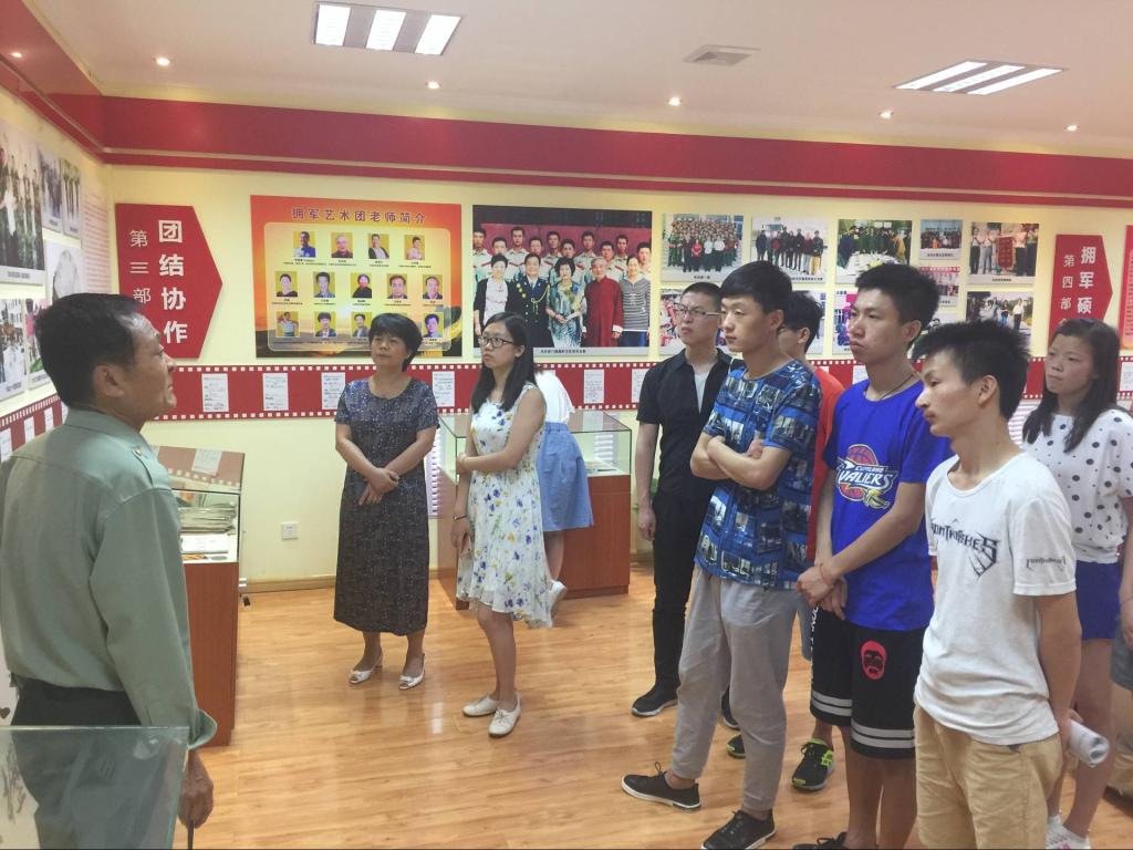 公司退休职工“双拥模范”李新建老师以他几十年的工作经验和人生阅历在展馆进行了生动深情的讲解。展馆分情系军营、拥军之路、团结协作、拥军硕果四个部分,各种照片,实物和证书充分展现了李老师全心全意投入拥军工作,心系部队,情系军营的优良作风,以及走遍祖国大江南北,为全国各地尤其是新疆边防士兵做文艺工作培训的艰苦历程和丰硕成果。