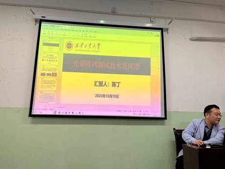 20231010日上午,西安工业大学兵器科学与技术公司经理助理、武器系统与工程系主任陈丁高级工程师来公司进行学术交流讲座。在莲湖校区北楼447教室,陈老师做了题为光幕阵列测试技术及应用的学术报告。